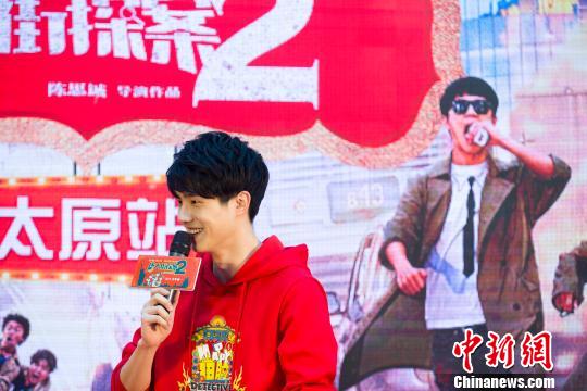 中國內(nèi)地男演員10日現(xiàn)身太原分享新電影《唐探2》幕后拍攝花絮。 張?jiān)啤z