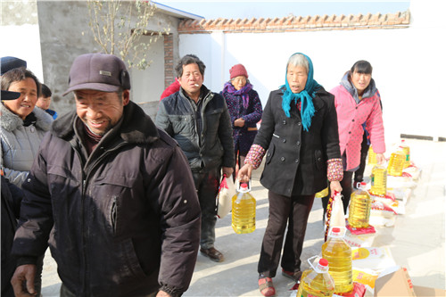 當(dāng)日上午,雖然天氣寒冷,可葉莊行政村村室院里卻暖意融融。該村村主任熊茂禮正在把備好的年貨發(fā)放到49戶村民的手中?!胺浅8兄x茂禮這么遠(yuǎn)回老家看望我們這些困難戶,讓我們過(guò)上一個(gè)好年?!爆F(xiàn)年76歲的村民張多朗是個(gè)五保戶,接過(guò)熊茂禮送上的年貨連聲道謝。熊茂禮鼓勵(lì)困難戶一定要對(duì)生活充滿信心,樂(lè)觀地面對(duì)生活。同時(shí),希望困難戶要保持良好心態(tài),積極面對(duì)困難,自強(qiáng)自立,早日擺脫困境。