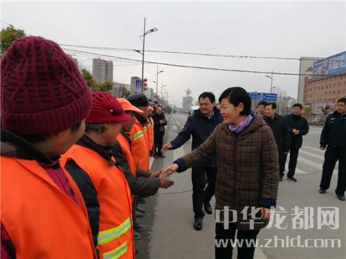 在鄲城縣城新華路與迎賓大道路口,羅文閣、李全林和一線值勤的環(huán)衛(wèi)工人、城管隊員一一握手,深切關(guān)心環(huán)衛(wèi)工人和城管隊員的冷暖。“看手多涼,要穿厚點兒呀。大年三十了,你們放棄和家人團圓吃餃子的機會,在為我們的縣城保潔,我們城市的清潔有賴于你們。你們辛苦了,給你們拜個年,祝你們身體健康。”羅文閣向環(huán)衛(wèi)工人遞上慰問金時,樸實的話語、殷殷的關(guān)懷把黨的溫暖涌向環(huán)衛(wèi)工人的心窩兒。“不辛苦,領導來看俺,俺里比吃餃子暖和。”環(huán)衛(wèi)工人邊鼓掌邊道出了內(nèi)心的激動。