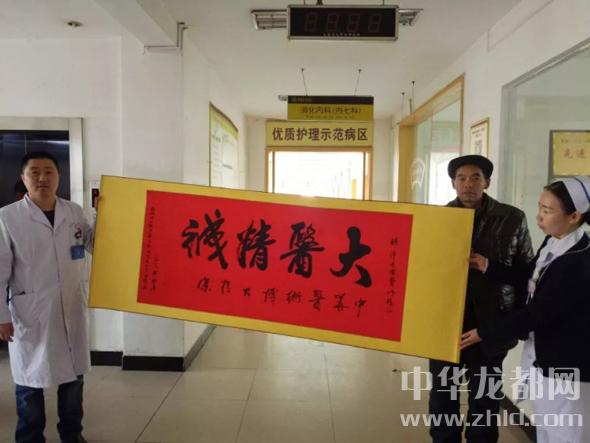 中華龍都網(wǎng)訊(周口報(bào)業(yè)全媒體記者 徐松 通訊員 張洋)2月26日,和往常一樣忙碌的鄲城縣中醫(yī)院消化內(nèi)科(內(nèi)七科)收到了一份別具一格的感謝——前不久從消化內(nèi)科出院的患者羅有志將自己精心準(zhǔn)備的書法作品送到了消化內(nèi)科主任許延杰和護(hù)士長劉賽手中,感謝住院期間科室醫(yī)護(hù)人員對(duì)自己的精心治療和熱心服務(wù)。