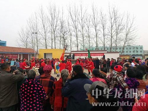 比李桂梅更有甚者,附近單樓村村民自己組成的群眾文藝隊聞聽消息之后,干脆全副武裝、濃妝艷抹來參演,和縣里來的木蘭旱船專業(yè)隊來場友誼賽。這邊鑼鼓咚咚鏘,那邊旱船鈴當(dāng)響,這邊空竹拖曳彩帶飛龍滿天飛,那邊“孫悟空舞金箍棒”“豬八戒背媳婦”逗得孩子們笑得前仰后合,再加上廣場東南角的太極表演、少年武術(shù)表演,還有舞臺一角的大鼓書演藝,整個廣場成為歡樂的海洋。