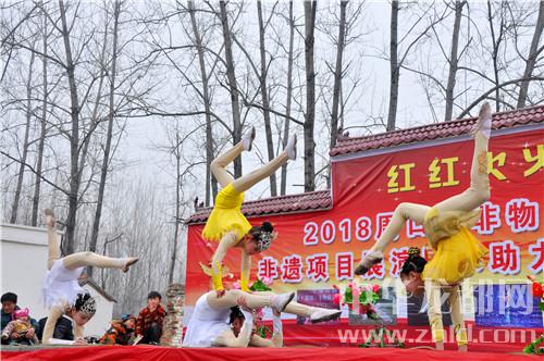 中華龍都網訊(周口報業(yè)全媒體記者 梁照曾 文/圖)2月28日上午,2018年周口市非物質文化遺產保護中心非遺項目展演展示助力扶貧暨慶賀元宵節(jié)活動,在鄲城縣巴集鄉(xiāng)徐樓行政村舉行。精彩的非遺項目表演,讓徐樓村村民享受一場文化盛宴。