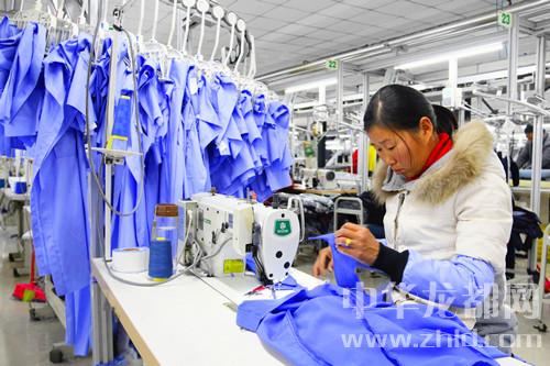 項城市產(chǎn)業(yè)集聚區(qū)莊吉服飾生產(chǎn)車間內(nèi),工人們正在趕制訂單服裝(如圖)。據(jù)了解,該企業(yè)由中國莊吉集團(tuán)上海服裝有限公司投資興建,總投資5億元,年上繳稅金1500萬元,吸納就業(yè)3000人,每月生產(chǎn)服裝85萬件,產(chǎn)品出口歐美、非洲等地區(qū)。該企業(yè)還通過開辦紡織服裝技能學(xué)校,對500余戶貧困家庭(殘疾人家庭等)進(jìn)行免費培訓(xùn),切實解決了貧困家庭就業(yè)問題。王潔石 攝