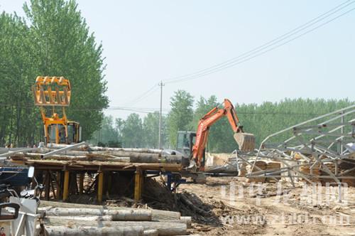 中華龍都網(wǎng)訊(周口報(bào)業(yè)全媒體記者 張勁松 通訊員 蘇千 文/圖)4月18日,東新區(qū)城管中心在該區(qū)國土局、許灣鄉(xiāng)政府的配合下,出動執(zhí)法人員120多名,執(zhí)法車輛10輛,對許灣鄉(xiāng)程寺行政村6處違法占地、違章建設(shè)進(jìn)行強(qiáng)制拆除。