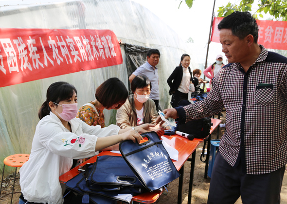 5月10日,在鹿邑縣馬鋪鎮(zhèn)完樓村殘疾人士付天軍的培訓(xùn)基地——蔬菜種植合作社助殘大棚內(nèi),來(lái)自鹿邑縣馬鋪鎮(zhèn)、渦北鎮(zhèn)產(chǎn)業(yè)集聚區(qū)的150多名建檔立卡貧困殘疾人,齊聚這里免費(fèi)學(xué)習(xí)黃瓜種植技術(shù),付天軍在大棚內(nèi)手把手地進(jìn)行指導(dǎo),來(lái)自華陽(yáng)學(xué)校的農(nóng)業(yè)專家李中蘭也應(yīng)邀在大棚內(nèi)對(duì)常見(jiàn)的病蟲(chóng)害進(jìn)行詳細(xì)講解。