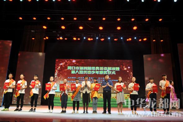 今年,經(jīng)過(guò)組織申報(bào)、層層推薦、審核公示、投票評(píng)選等程序,“市美德少年評(píng)委會(huì)”授予商水縣湯莊一中的王一帆、殷夢(mèng)丹,周口實(shí)驗(yàn)小學(xué)的盧若沖,太康縣城關(guān)中學(xué)的李思墨等11名同學(xué)“周口市美德少年”榮譽(yù)稱(chēng)號(hào);授予王博、趙子怡等10名同學(xué)“周口市美德少年”提名榮譽(yù)稱(chēng)號(hào)。在熱烈的掌聲中,這些身著佩帶的美德少年走向舞臺(tái),與會(huì)領(lǐng)導(dǎo)為他們頒發(fā)獎(jiǎng)杯和證書(shū)??粗峙酹?jiǎng)杯的美德少年,臺(tái)下的小學(xué)生宋佳佳悄悄告訴身邊的媽媽?zhuān)骸斑@些哥哥姐姐有的舍己救人,有的助人為樂(lè),有的尊老愛(ài)幼,優(yōu)秀的品質(zhì)值得我們學(xué)習(xí),以后我也要從小事做起,從點(diǎn)滴做起,爭(zhēng)取成為下一屆的美德少年?!?/p>