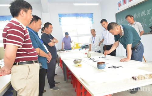 李世棟、姚海城都是當(dāng)?shù)氐臅◥酆谜?,?jīng)常寫寫畫畫,時常在電視或電腦上看一些書法名家的講座,但是還都沒有過與書法名家面對面交流的經(jīng)歷。所以,他們一聽說有書法家進(jìn)校園的活動,都急匆匆地從收麥現(xiàn)場向王坡寨學(xué)校趕去。