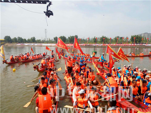 精彩無比的翎船捕鴨賽后,首先進(jìn)行的是市直組、企業(yè)組200米競速賽的預(yù)選賽。隨著發(fā)令槍響,各參賽隊伍迅速搖動船槳,爭先恐后地向前劃行。在兩岸觀眾一浪高過一浪的吶喊助威聲中,參賽隊頑強拼搏,競相沙潁河上飛渡,不僅點燃了市民傳承龍舟文化的熱情,也點燃了周口人民的競進(jìn)激情。