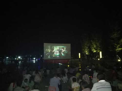 “這清楚,比原來的老式露天電影清楚多了。坐到電影機(jī)前才看到,這跟電影院里的機(jī)器一樣,是數(shù)字電影,沒有膠帶的。晚上出來涼快涼快,沒想到還能看大片兒,這都是愛國的大片兒,兩個(gè)孩子正好今天放假,我把他們都帶來了?!笔忻穸∠壬吲d地說。