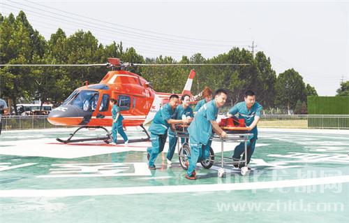 中華龍都網(wǎng)訊 6月28日上午,全市“防災(zāi)減災(zāi)立體救援”航空醫(yī)療救援啟動儀式在周口協(xié)和骨科醫(yī)院啟動??罩芯o急救援一小時內(nèi)全省到達(dá)。圖為直升機救援演練現(xiàn)場。