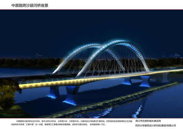 這次集中開(kāi)工的14座橋梁,包含中原路跨沙潁河橋新建工程,流沙河大成路橋、洼沖溝政通路橋、洼沖溝人和路橋、流沙河騰飛路橋新建工程,以及9座老橋梁景觀改造工程,均位于城市主次干道的重要節(jié)點(diǎn),總投資5.6億元。其中,新建的中原路跨沙潁河大橋是其中最大的工程,橋長(zhǎng)837米,橋?qū)?5米,建安費(fèi)投資估算4.2億元,建成后,沙潁河南北通行更加順暢。