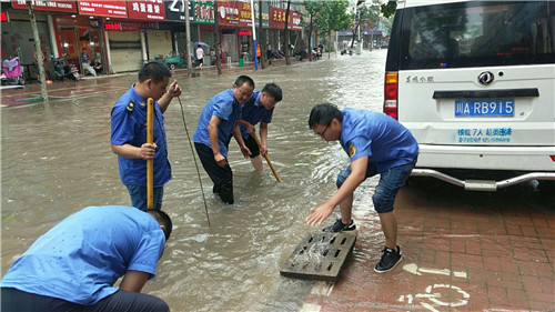 鄲城縣城管大隊(duì)負(fù)責(zé)人介紹,從早上6點(diǎn)開始,該大隊(duì)就對縣城區(qū)域內(nèi)疑似積水路段進(jìn)行了排查澄清底數(shù),發(fā)揮本單位熟悉城市供排水布局的工作優(yōu)勢,根據(jù)下水道窨井口所在路段進(jìn)行分工,5人一組分別值守各路段。