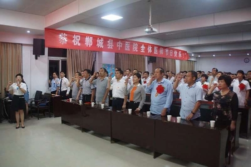 在鄲城縣中醫(yī)院醫(yī)務(wù)部主任肖儉的帶領(lǐng)下,中醫(yī)院的醫(yī)師們莊重地舉起右拳,莊嚴(yán)地宣誓,決心嚴(yán)格遵守誓言,時(shí)刻以中國(guó)醫(yī)師宣言為激勵(lì),以自身的實(shí)際行動(dòng)踐行誓言,忠誠(chéng)于醫(yī)療衛(wèi)生事業(yè),全心全意為人民健康服務(wù),恪守醫(yī)德、團(tuán)結(jié)合作、精益求精,做人類健康的衛(wèi)士。