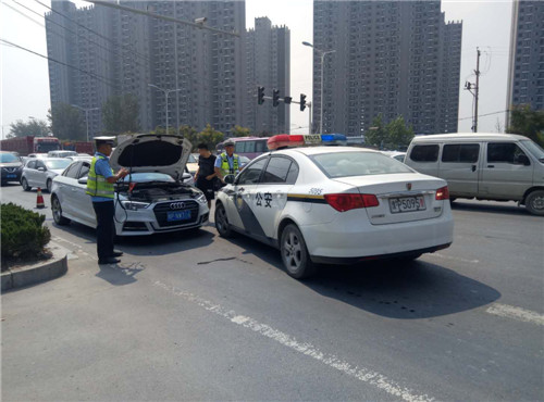 8月26日中午11點(diǎn),周口港區(qū)公安分局民警發(fā)現(xiàn),一輛私家車行經(jīng)周項(xiàng)路周口港區(qū)路段時(shí),發(fā)生故障停在快車道,影響道路暢通。港區(qū)交警部門負(fù)責(zé)人姜亞偉上前了解情況,得知汽車電瓶出現(xiàn)故障,無法正常發(fā)動(dòng)。于是姜亞偉將警車開到私家車旁,用汽車電瓶連接線將警車電池與私家車鏈接,幫助車主啟動(dòng)汽車,迅速恢復(fù)道路交通秩序。