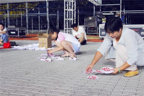 在場(chǎng)地的一側(cè),幾名工作人員正在全神貫注地整理一大堆號(hào)碼貼,“省運(yùn)會(huì)是全省的體育盛會(huì),能有機(jī)會(huì)參與這樣的運(yùn)動(dòng)會(huì)是一種榮幸,我們準(zhǔn)確地說應(yīng)該算是志愿者,因?yàn)槲覀儗儆诹x務(wù)勞動(dòng)?!逼渲幸幻空f,這是細(xì)活,急不得,號(hào)碼非常多,英文中的26個(gè)字母,分大小寫,然后還和阿拉伯?dāng)?shù)字進(jìn)行組合,她們的工作就是要把這些號(hào)碼捋順,防止出現(xiàn)差錯(cuò)。記者注意到,場(chǎng)地的四周放置了很多音響,工作人員正在對(duì)播音設(shè)備進(jìn)行調(diào)試,雖然還處于調(diào)試階段,但是聽起來已經(jīng)非常震撼。在場(chǎng)地旁邊,部分表演道具也整齊擺放著,看到這些精致的道具,開幕式當(dāng)天的文藝表演精彩程度可見一斑。