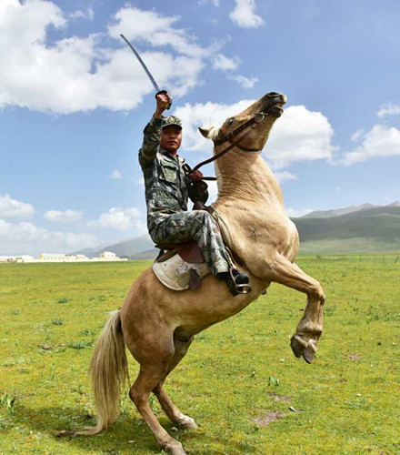 “一開始就‘認(rèn)慫’,哪還有一點(diǎn)騎兵精神可言。”趙雪超暗自打氣。打那以后,趙雪超像根上緊的發(fā)條,和戰(zhàn)馬較上了勁。他晚上練劈刺,白天練馬術(shù)動(dòng)作,被馬一次次地摔下去,他拍掉身上的塵土又一次次地躍上馬背……就是憑借這股不服輸?shù)捻g勁, 3個(gè)月后,趙雪超的訓(xùn)練成績(jī)?cè)谶B隊(duì)名列前茅。