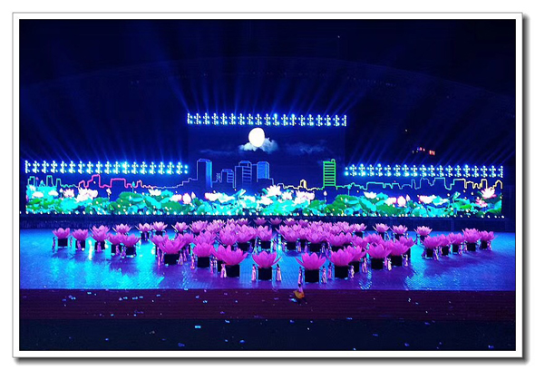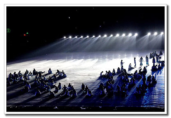 省運會開幕式第二篇章《幸福家園》,昨晚八點在周口體育場對光排練,直至凌晨兩點結束。葛英 攝