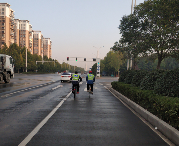 10月3日6時,國際級丈量員、吉林體育學院教授袁林受中國田徑協(xié)會委派,與周口馬拉松組委會工作人員一起,對周馬新調(diào)整的賽道進行精準丈量。