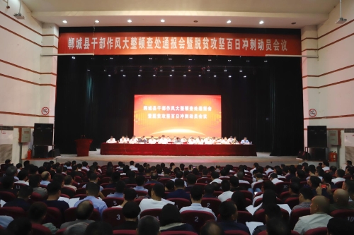 10月7日上午,鄲城縣干部作風大整頓第四次查處通報大會暨脫貧攻堅“百日沖刺”動員會召開。會議貫徹落實全省脫貧攻堅電視電話會議和脫貧退出培訓(xùn)會議精神,聚焦脫貧摘帽目標任務(wù)和作風問題,分析當前形勢,進一步動員全縣上下統(tǒng)一思想、提振精神,強化責任、盡銳出戰(zhàn),向脫貧摘帽發(fā)起總攻??h委書記羅文閣出席會議并講話,縣長李全林主持會議??h領(lǐng)導(dǎo)崔衛(wèi)國、李建軍、姜永來、侯磊、吳青鋒、王智華、呂振龍、馬超、胡友濤、崔衛(wèi)華、劉輝等參加會議。