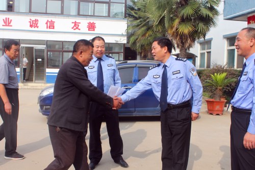 10月9日上午,李埠口鄉(xiāng)孫莊村數(shù)十名群眾代表,來到周口市公安局港區(qū)分局,將寫有“打黑除害促和諧,警民共建保平安”的錦旗和感謝信送到何學(xué)民政委的手中,村民代表對(duì)分局鐵腕鏟除該村“村霸”維護(hù)孫莊村和諧穩(wěn)定表示由衷的感謝。