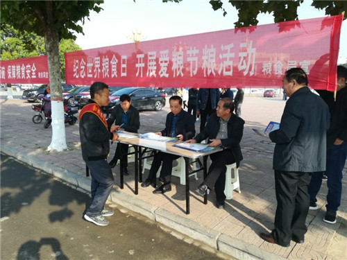 在世界糧食日當天,以縣糧食局為牽頭單位,在縣政府及局門口設立宣傳主會場,制作展板4塊,懸掛條幅32條,出動宣傳車6輛,數(shù)十名工作人員統(tǒng)一佩戴宣傳標語綬帶,為過往市民宣傳講解糧食安全知識,并接受全縣種糧大戶、合作社人員現(xiàn)場咨詢。當日,主會場共發(fā)放宣傳資料3000余份,讓廣大市民了解糧食安全、愛糧節(jié)糧、糧油選購、合理膳食等科普知識。