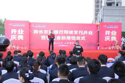 10月24日,商水農(nóng)商銀行舉行陽城支行開業(yè)暨 普惠金融授信儀式。該行行長李楠及中層以上人員參加儀式??h金融辦負(fù)責(zé)人姜建中 、縣人民銀行行長徐明、銀監(jiān)辦主任張明瑭,部分客戶代表應(yīng)邀出席儀式,儀式由姜建中主持。