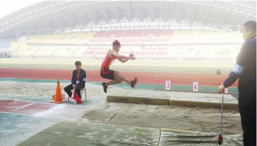 10月24日上午,河南省第七屆殘疾人運動會跳遠(yuǎn)比賽在市體育中心體育場進行。在跳遠(yuǎn)賽場,參賽選手完成每一次跳躍后,都會與裁判員進行溝通,認(rèn)真對待比賽。 ②8 記者 牛思光 攝