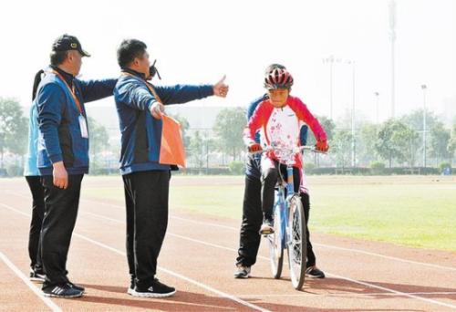 10月24日上午,河南省第七屆殘疾人運動會自行車比賽女子聽力組5公里個人計時賽進入決賽。周口小將葛雨露,在發(fā)令員、手語工作人員的示意下展開角逐。②8記者 梁照曾 攝