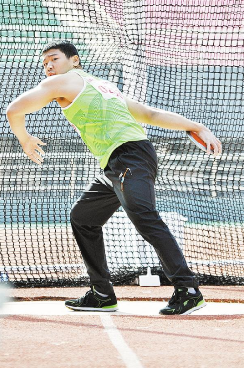 10月24日上午,河南省第七屆殘疾人運動會田徑項目中的擲鐵餅比賽正進行得如火如荼。圓圓的鐵餅從運動員的手中拋出,劃過美麗的天空,落在草地上。該項運動展示了運動員陽剛、拼搏的一面。圖為比賽現(xiàn)場。②8 記者 梁照曾 攝