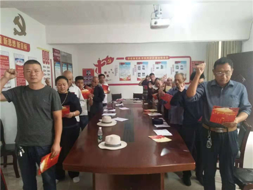 “我志愿加入中國(guó)共產(chǎn)黨,擁護(hù)黨的綱領(lǐng),遵守黨的章程,履行黨員義務(wù)……”在汲水鄉(xiāng)張嶺行政村室,汲水鄉(xiāng)黨委副書(shū)記王申帶領(lǐng)全體黨員面對(duì)黨旗,一起重溫入黨誓詞,并學(xué)習(xí)黨章黨規(guī)。