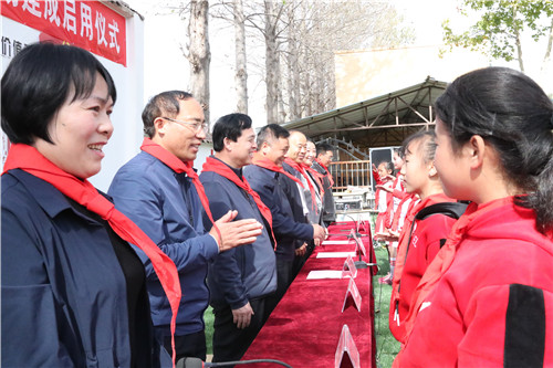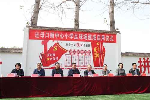 啟用儀式上,該縣遜母口鎮(zhèn)中心小學(xué)的學(xué)生們愉快地表演了足球操,少先隊(duì)員分別向領(lǐng)導(dǎo)和嘉賓佩戴紅領(lǐng)巾表達(dá)感恩之情。河南省第十三屆人大代表張華女士代表足球場捐建單位講話。張華說,當(dāng)前,隨著脫貧攻堅(jiān)深入開展,家鄉(xiāng)的各項(xiàng)事業(yè)蓬勃發(fā)展。作為遜母口鎮(zhèn)的一員,看到家鄉(xiāng)這些年翻天覆地的變化,感到特別喜悅。作為一名省人大代表,為助力家鄉(xiāng)脫貧攻堅(jiān),同時落實(shí)“脫貧攻堅(jiān)人大代表在行動”號召,便決定投資50萬元為遜母口鎮(zhèn)中心小學(xué)建立一個高標(biāo)準(zhǔn)的踢足場,滿足孩子們踢足球的愿望。
