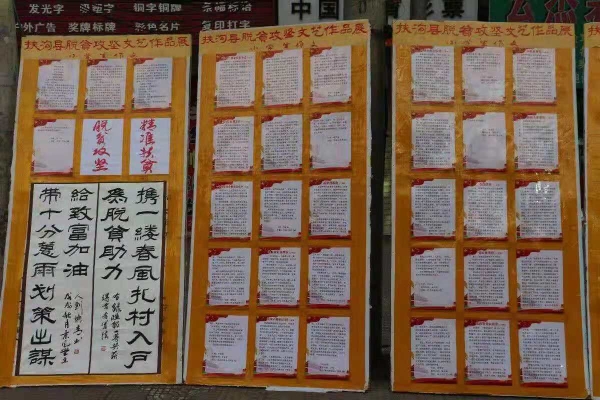 為全面展示扶溝縣廣大干部群眾積極投身脫貧攻堅(jiān)的偉大實(shí)踐,10月30日,由扶溝縣委宣傳部等主辦的脫貧攻堅(jiān)文藝作品展覽在桐丘路北段縣委門口開幕??h委常委、宣傳部長(zhǎng)馬昭才,縣人大常委會(huì)副主任陳建華,縣政協(xié)副主席李建設(shè)等出席活動(dòng),縣直有關(guān)單位負(fù)責(zé)人及文藝愛好者參加活動(dòng)。