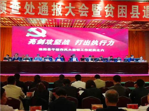 10月31日上午,淮陽縣干部作風大整頓查處通報大會暨貧困退出縣級自評動員會在羲皇賓館東三樓會議廳召開。縣委書記馬明超出席會議并講話,縣長王毅主持會議,縣委副書記、政法委書記岳新坦宣讀《脫貧攻堅督查通報》,縣委常委、縣紀委書記、縣監(jiān)委主任王之夢宣讀《通報》,被通報單位負責人作表態(tài)發(fā)言。
