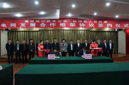 郭雷與張穎波分別代表市供電公司和扶溝縣政府簽署了電網(wǎng)發(fā)展戰(zhàn)略合作協(xié)議。