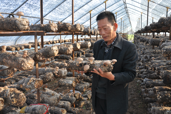 商水縣城關(guān)鄉(xiāng)瓦房莊村在省檢察院駐村工作隊(duì)的支持下,于今年9月成立合作社,投資50多萬(wàn)元發(fā)展香菇種植,一期項(xiàng)目占地12畝,建設(shè)生產(chǎn)棚12個(gè)、養(yǎng)菌棚4個(gè),頭茬香菇上市后供不應(yīng)求,帶領(lǐng)當(dāng)?shù)?0多戶(hù)群眾走上致富路。圖為技術(shù)人員正在大棚里觀察香菇長(zhǎng)勢(shì)。