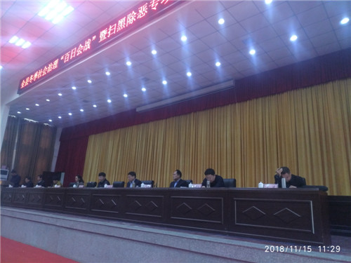 11月15日上午,鹿邑縣在縣委黨校一樓報(bào)告廳召開(kāi)全縣冬季社會(huì)治安“百日會(huì)戰(zhàn)”暨掃黑除惡專(zhuān)項(xiàng)斗爭(zhēng)推進(jìn)會(huì)。會(huì)議對(duì)全縣冬委社會(huì)治理“百日會(huì)戰(zhàn)”第一次工作以及全縣掃黑除惡專(zhuān)項(xiàng)斗爭(zhēng)第五次工作進(jìn)行通報(bào);縣領(lǐng)導(dǎo)梁建松、侯自峰、王曉征、何新敏、齊梅英、魯建軍等出席會(huì)議??h直各局委、各鄉(xiāng)鎮(zhèn)辦事處主要負(fù)責(zé)人、綜治辦主任和各基層派出所長(zhǎng)、司法所長(zhǎng)以及來(lái)自公安、檢察、法院、司法戰(zhàn)線的干警近千人參加會(huì)議。