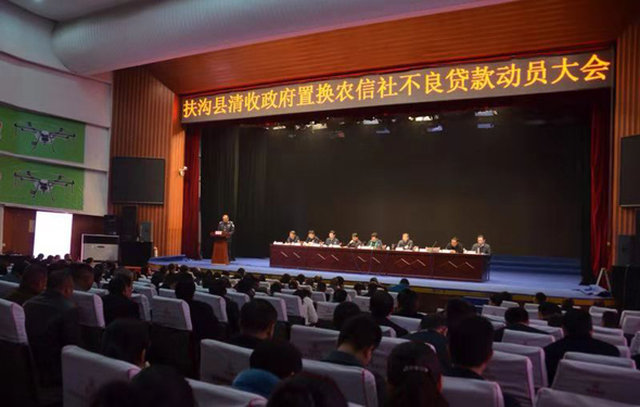 11月21日,扶溝縣召開(kāi)政府置換農(nóng)信社不良貸款清收工作動(dòng)員會(huì)。會(huì)議貫徹落實(shí)省、市有關(guān)部署,動(dòng)員全縣上下統(tǒng)一思想,提高認(rèn)識(shí),細(xì)化措施,夯實(shí)責(zé)任,推動(dòng)政府置換農(nóng)信社不良貸款清收工作深入開(kāi)展、取得實(shí)效。張穎波、張峰、王偉、常青、王霄靈、陳建華、李建設(shè)等縣領(lǐng)導(dǎo)出席會(huì)議。縣委副書(shū)記、政法委書(shū)記張峰主持會(huì)議。