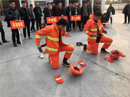 “誰英雄誰好漢,訓(xùn)練場上比比看”。11月21日上午,鄲城縣舉行微型消防站比武競賽,全縣6個行業(yè)系統(tǒng)48支代表隊同臺競技,一比高下??h政府黨組成員張仁杰出席開幕式作動員講話并宣布比武競賽開始??h安監(jiān)局副局長劉榮萍,民政局副局長孫玉霞,教體局副局長張衛(wèi)華,衛(wèi)計委副主任禹廣民,住建局副局長咸國彬,縣消防大隊大隊長李陽出席活動??h消防大隊教導(dǎo)員王承恩主持開幕式。
