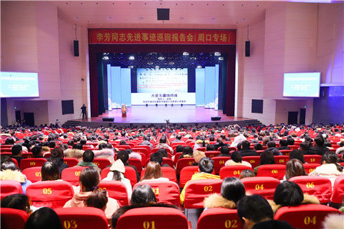 12月12日上午,李芳同志先進(jìn)事跡巡回報(bào)告會(huì)(周口專(zhuān)場(chǎng))在周口師范學(xué)院舉行,來(lái)自全市教育系統(tǒng)的1000余名干部、教師聆聽(tīng)了李芳的先進(jìn)事跡和生活點(diǎn)滴,感受李芳高尚的師德光輝,接受心靈的洗禮。