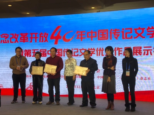 12月19日,第五屆中國傳記文學(xué)優(yōu)秀作品展示會在北京國際飯店召開。中國著名傳記作家陳廷一(鹿邑籍)憑借其作品《中國之蒿—屠呦呦獲諾貝爾獎之謎》站上了領(lǐng)獎臺,并作題為《以傳記文學(xué)創(chuàng)作見證時代發(fā)展》演講。