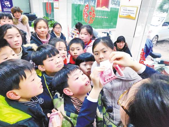 “歡迎各位小記者的到來,大家在過年的時(shí)候有沒有收到壓歲錢呢?”項(xiàng)城中銀富登村鎮(zhèn)銀行公司部經(jīng)理馮靖涵的一句話頓時(shí)讓小記者們從緊張的情緒中釋放出來。“我的壓歲錢,媽媽幫我存在銀行里了!”“我壓歲錢還放在存錢罐里,有時(shí)候還會(huì)拿出來數(shù)一數(shù)!”……小記者們的回答讓家長(zhǎng)們都不由地笑起來。