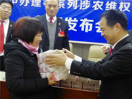 “感謝項(xiàng)城法院的領(lǐng)導(dǎo),他們一心為民,克服種種困難,幫助我們要回了血汗錢?!?2月24日,項(xiàng)城法院拖欠農(nóng)民工工資案件集中辦理等系列涉農(nóng)維權(quán)活動(dòng)新聞發(fā)布會(huì)在該院召開(kāi),16名涉農(nóng)維權(quán)案件當(dāng)事人從項(xiàng)城法院黨組成員、院長(zhǎng)張永波的手中接過(guò)索要許久的血汗錢,喜極而泣。