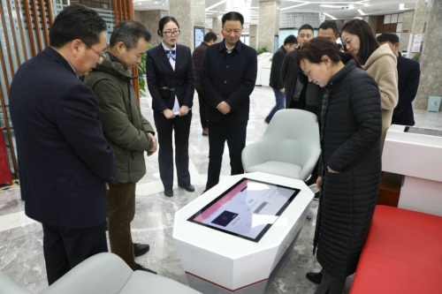 調(diào)研組一行首先來到商水農(nóng)商銀行陽城支行查看“普惠+數(shù)字”銀行建設(shè)情況。陽城支行行長簡要介紹該網(wǎng)點(diǎn)基本情況、服務(wù)理念后,引導(dǎo)調(diào)研組一行依次參觀了普惠授信服務(wù)區(qū)、數(shù)字智能服務(wù)區(qū)、電子銀行體驗(yàn)區(qū)、保管箱服務(wù)區(qū)、貴金屬服務(wù)區(qū)等特色功能區(qū),并詳細(xì)介紹了每個功能區(qū)的作用和特點(diǎn)。調(diào)研組一行現(xiàn)場體驗(yàn)了智能導(dǎo)覽臺 、客戶互動桌等智能設(shè)備,對該網(wǎng)點(diǎn)定位準(zhǔn)確、理念前衛(wèi)、設(shè)備先進(jìn)、功能齊全、分區(qū)合理,為客戶提供全方位的金融服務(wù)表示贊賞。