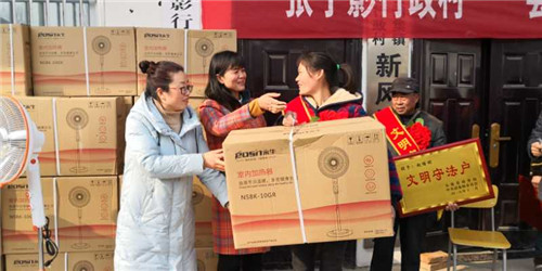 太康縣商務(wù)局為38戶(hù)受表彰的先進(jìn)家庭頒發(fā)了獎(jiǎng)牌和價(jià)值300元的電熱扇。