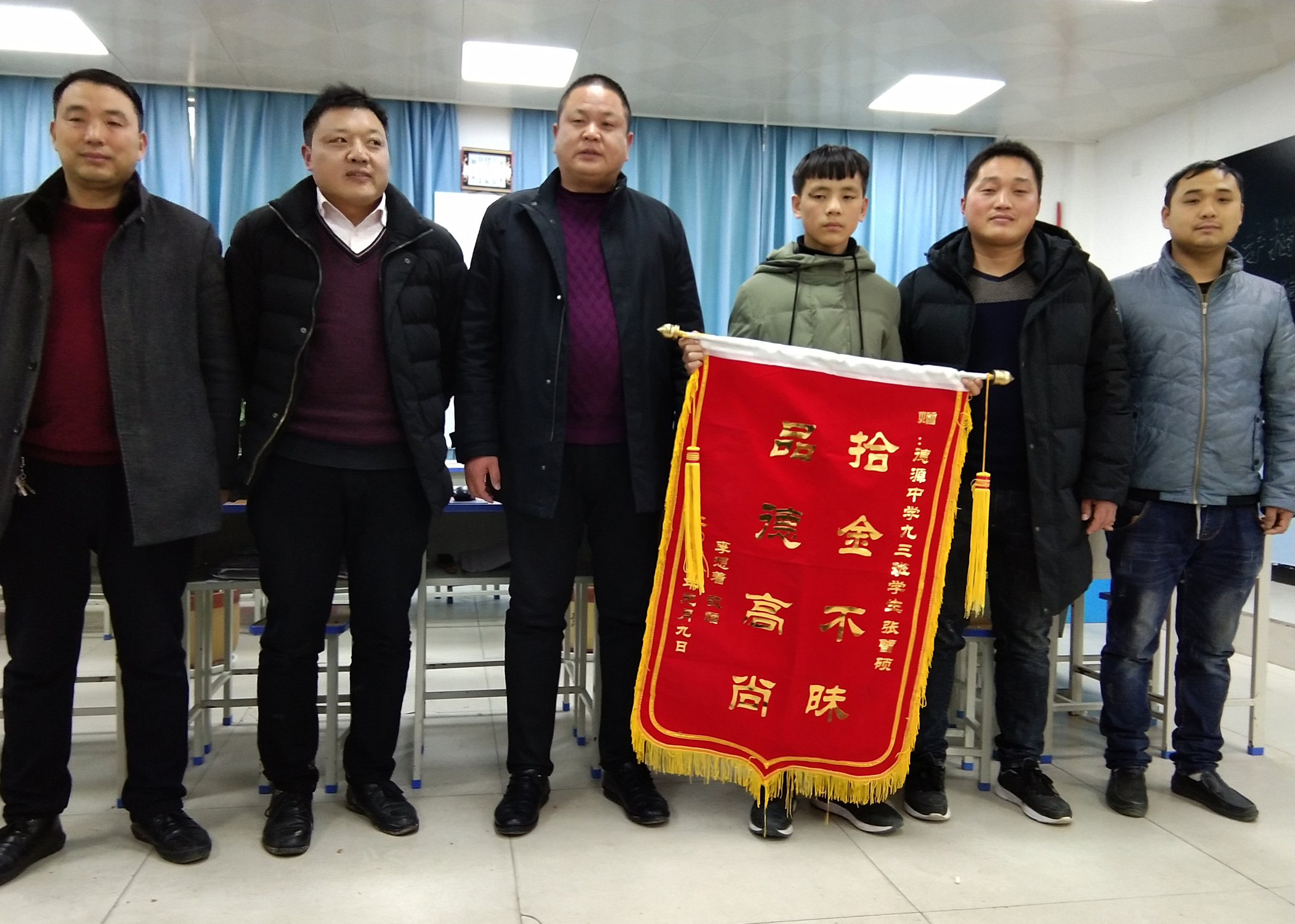 1月9日下午1時許,和往常一樣,鹿邑縣德源中學(xué)的師生們吃了午飯,匆忙進班。在初中教學(xué)樓五樓,九年級三班班主任尹紀偉被跑得氣喘吁吁學(xué)生張曾碩攔住了,他告訴尹老師,在來校的路上他撿到了一個錢包,里面有銀行卡、身份證、駕駛證等重要證卡和現(xiàn)金近干元……