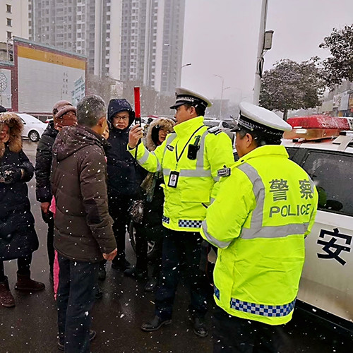 交警雪中處理交通事故