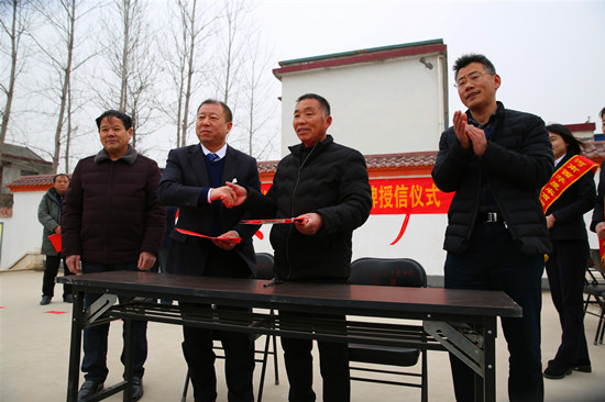 崗趙村是周口市行政服務(wù)中心幫扶的貧困村。去年11月份,駐村第一書記李文杰得知西華廈農(nóng)商村鎮(zhèn)銀行已開始在村一級評定設(shè)立“鄉(xiāng)村振興示范點”,立即與該行負(fù)責(zé)人取得聯(lián)系、積極溝通。銀行方面經(jīng)過認(rèn)真考察,最終確定在崗趙“設(shè)點”。25日在崗趙村部舉行的授牌授信儀式上,西華縣人民銀行有關(guān)負(fù)責(zé)人為崗趙村授予“鄉(xiāng)村振興示范點”牌匾,西華廈農(nóng)商村鎮(zhèn)銀行負(fù)責(zé)人與崗趙村負(fù)責(zé)人簽訂了授信協(xié)議書。周口市行政服務(wù)中心和葉埠口鄉(xiāng)政府負(fù)責(zé)人都熱情致辭,百余名村民代表見證了這一激動人心的時刻。準(zhǔn)備做早餐生意的村民趙合成說:“咱農(nóng)民貸款也不用再跑冤枉路、花冤枉錢,這個‘點’設(shè)得真中!”