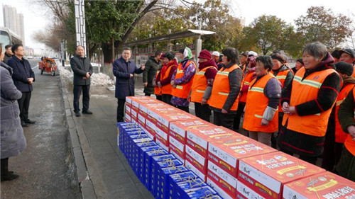 慰問中,皇甫立新、劉國慶一行首先來到新區(qū)“三公開”廣場,慰問堅(jiān)守一線的環(huán)衛(wèi)工人,向他們致以新春的祝福,并對他們在過去一年里付出的辛勤勞動表示衷心感謝?;矢α⑿轮赋觯荒陙?,環(huán)衛(wèi)工人們起早貪黑、兢兢業(yè)業(yè),為改善居民生活環(huán)境和提升城市形象付出很多心血和汗水,取得了良好效果,城區(qū)環(huán)境和城市面貌有了很大改善,得到了社會各界的一致好評,希望環(huán)衛(wèi)工人們在春節(jié)期間繼續(xù)發(fā)揚(yáng)奉獻(xiàn)精神,把縣城衛(wèi)生打造的更加干凈、整潔,讓廣大市民和回家過年的群眾能深刻感受到縣城環(huán)境的新變化,過一個(gè)干凈舒適愉快的春節(jié)。