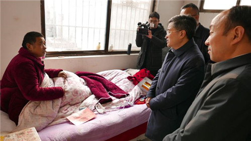 隨后,皇甫立新、劉國慶一行來到槐店鎮(zhèn)高營行政村,看望慰問了困難黨員高功命、勞模高延旭、困難群眾高四清,給他們送去了慰問品和慰問金,向他們致以新春的問候和祝福。并叮囑隨行人員要時(shí)刻把老黨員、勞模、困難群眾的冷暖放在心上,加大保障力度,及時(shí)了解他們的生產(chǎn)生活所需,積極主動幫助他們解決實(shí)際困難,努力提高他們的生活水平和質(zhì)量,把黨和政府的關(guān)懷真正落到實(shí)處,使他們真真切切感受到黨和政府的溫暖。