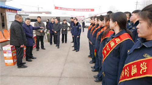 在縣公交公司,皇甫立新首先向全體干部職工致以節(jié)日的問候,對他們一年來為全縣人民安全順利出行做出的貢獻(xiàn)表示感謝。在認(rèn)真聽取有關(guān)負(fù)責(zé)人關(guān)于節(jié)日期間增開班車和車次的匯報(bào)后,皇甫立新說,公交車作為公共交通運(yùn)輸體系中的重要組成部分,不僅在完善城市交通運(yùn)輸格局、方便市民出行方面發(fā)揮著重要作用,同時(shí)也是城市形象的象征。希望堅(jiān)守崗位的公交職工要繼續(xù)提供優(yōu)質(zhì)服務(wù),文明安全駕駛,為居民在春節(jié)期間走親訪友和安全出行提供方便、搞好服務(wù),展示出沈丘公交公司員工的良好素質(zhì)和良好形象。并叮囑公交公司負(fù)責(zé)人要合理安排好職工的工作和生活,為廣大一線工作人員安心工作提供堅(jiān)實(shí)的后勤保障,讓他們更加舒心愉快地服務(wù)廣大群眾。
